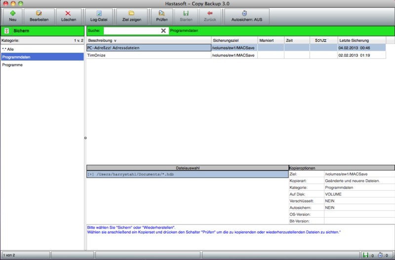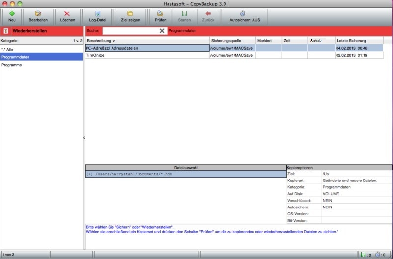 CopyBackup für MAC - Bildschirmansichten-Hauptmaske |